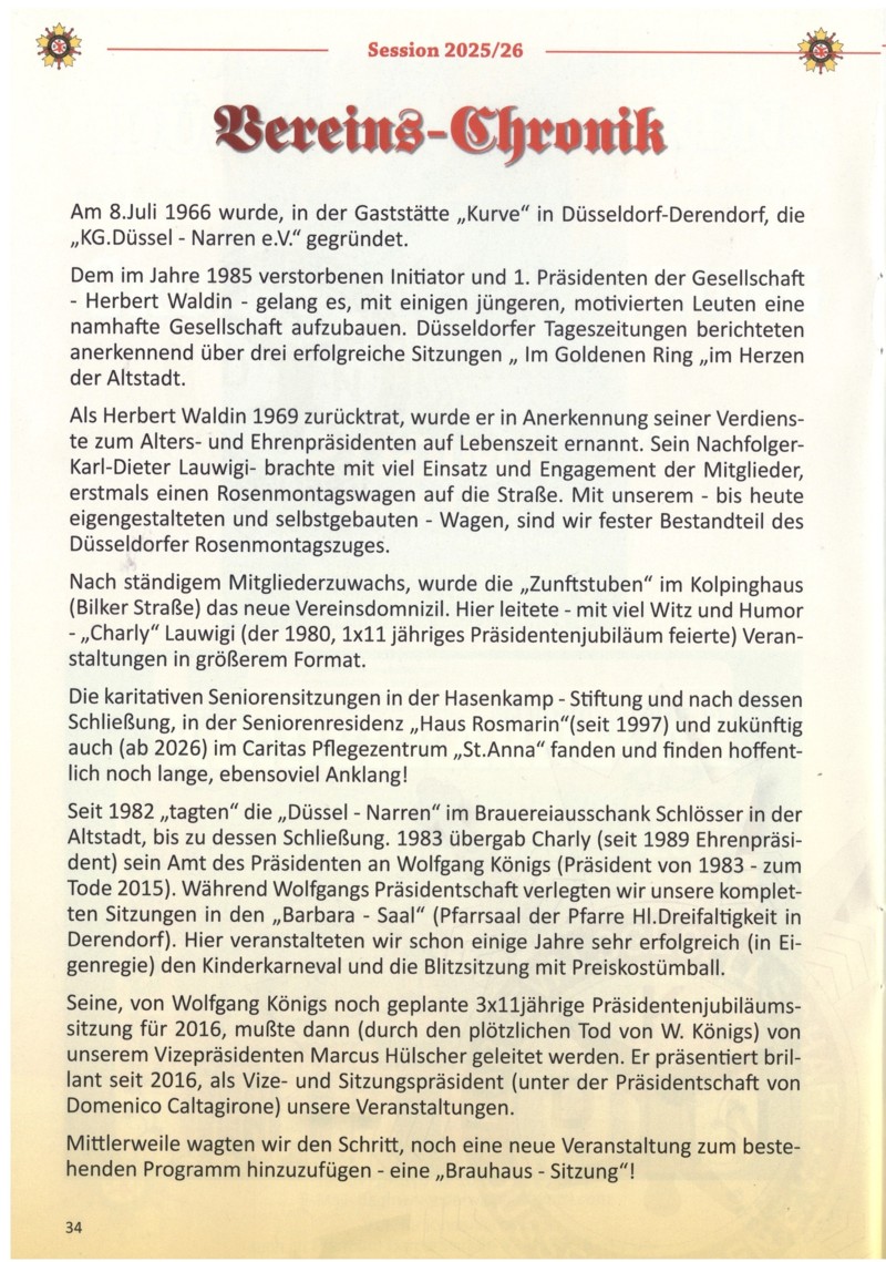 Vereinshistorie aus unserem aktuellen Sessionsheft